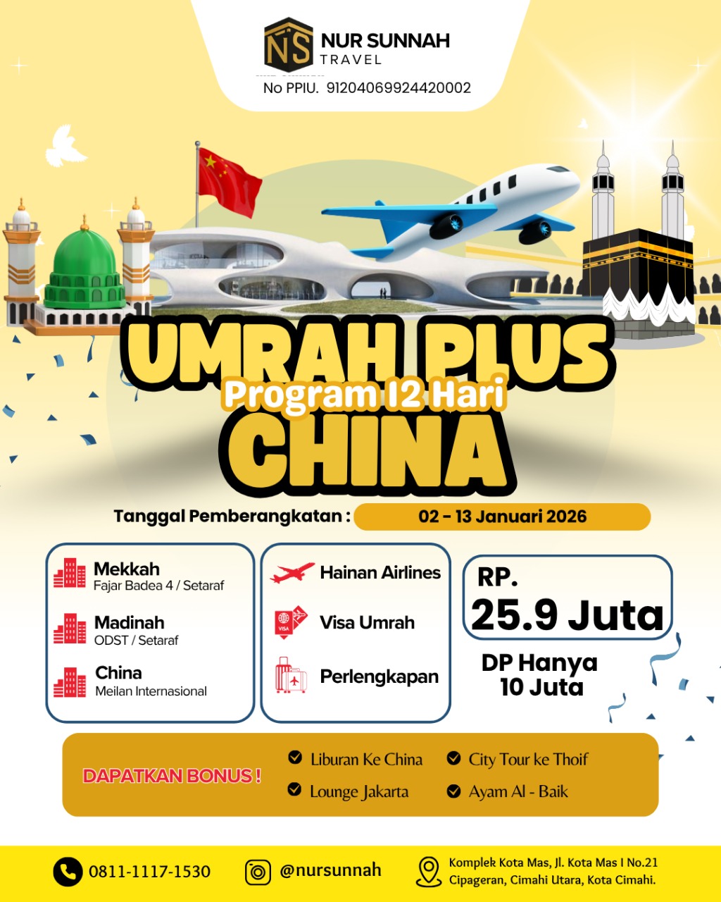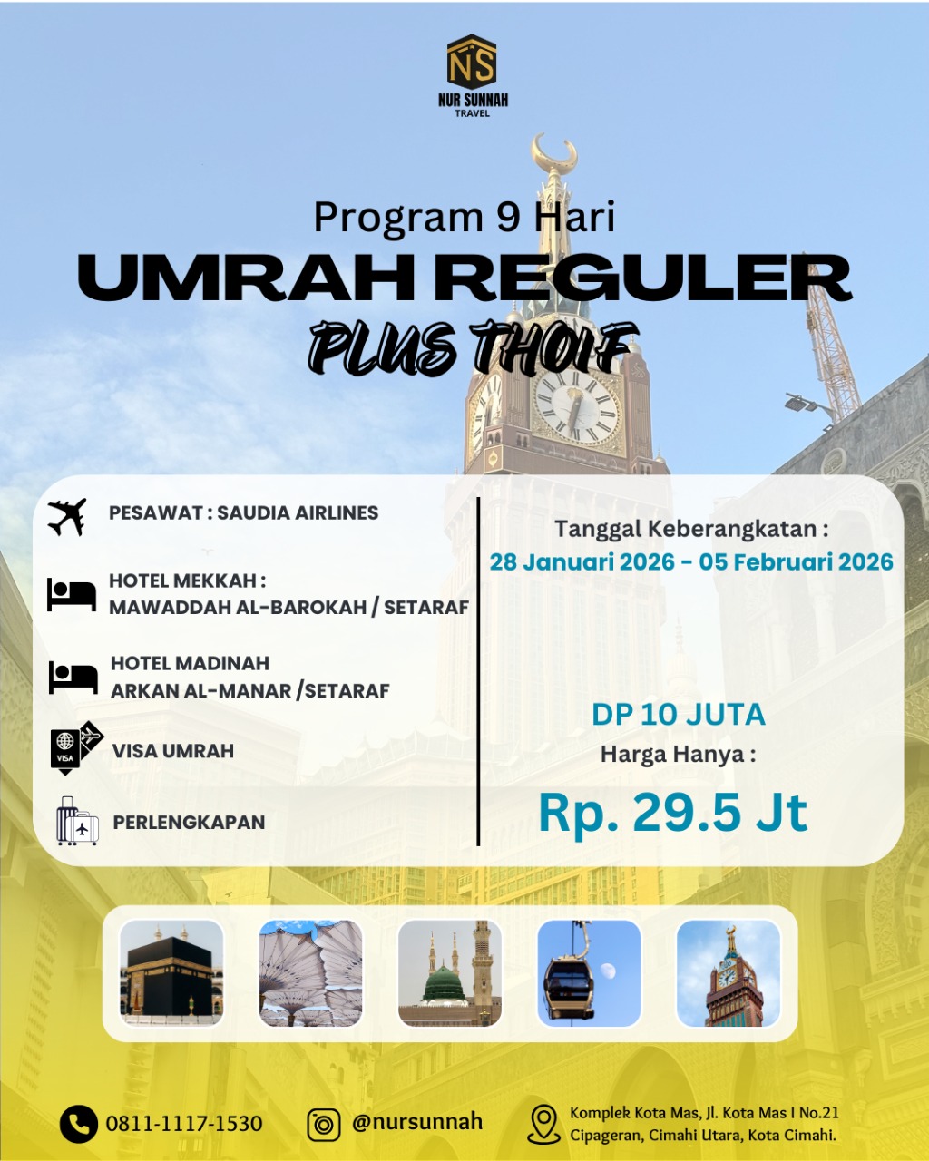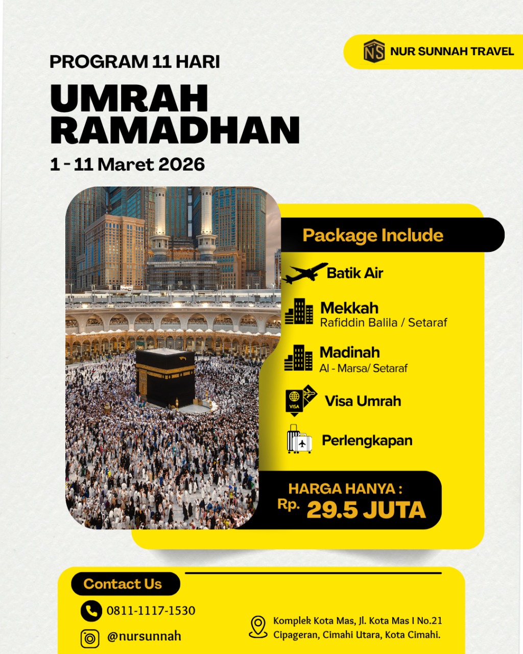 Silahkan konsultasikan kebutuhan Anda terkait ibadah umroh dengan Nur Sunnah Travel.
